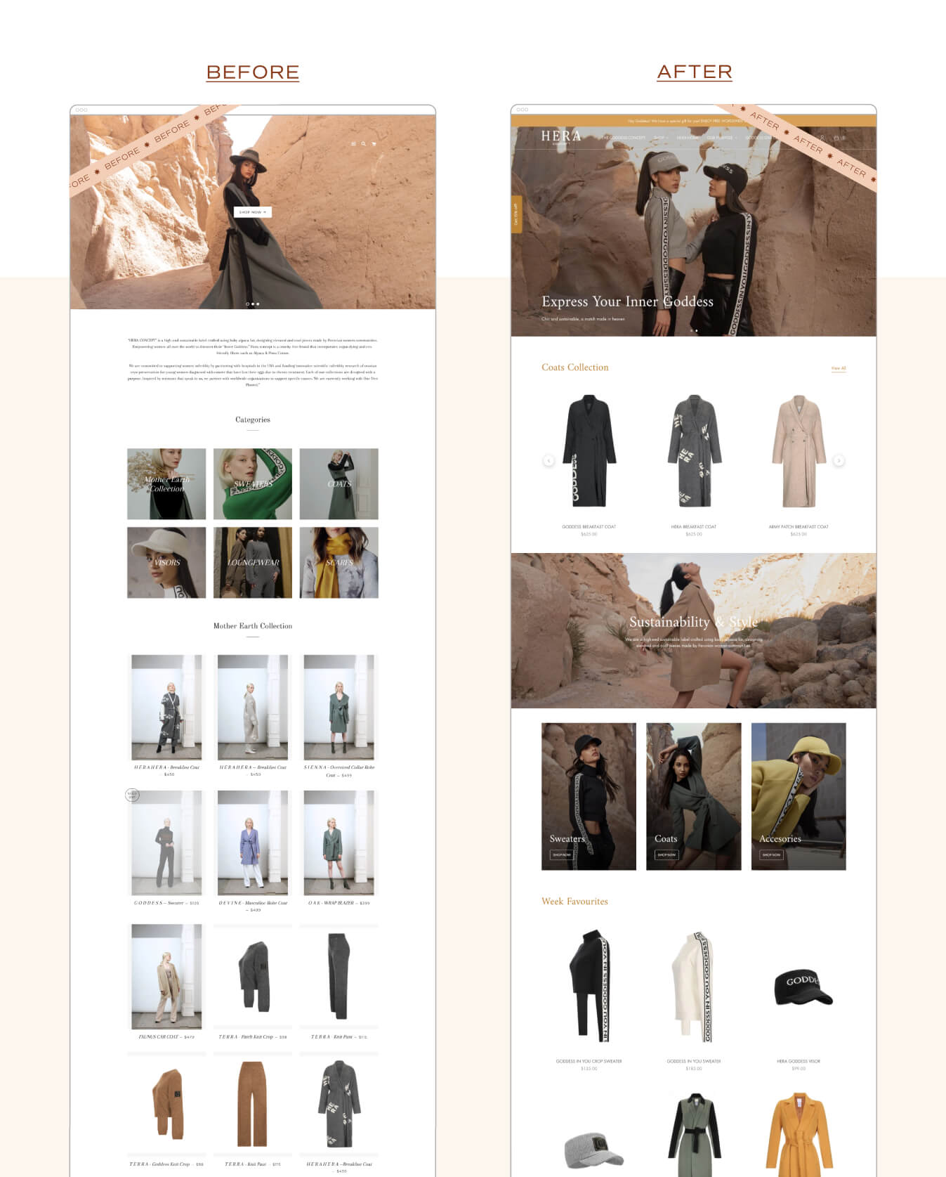 Hera Concept is a brand full of values with a clear mission of empowering women. Their previous site wasn't reflected it well, so they reached out looking for a redesign that helps them enhance their message and showcase their product promise better.