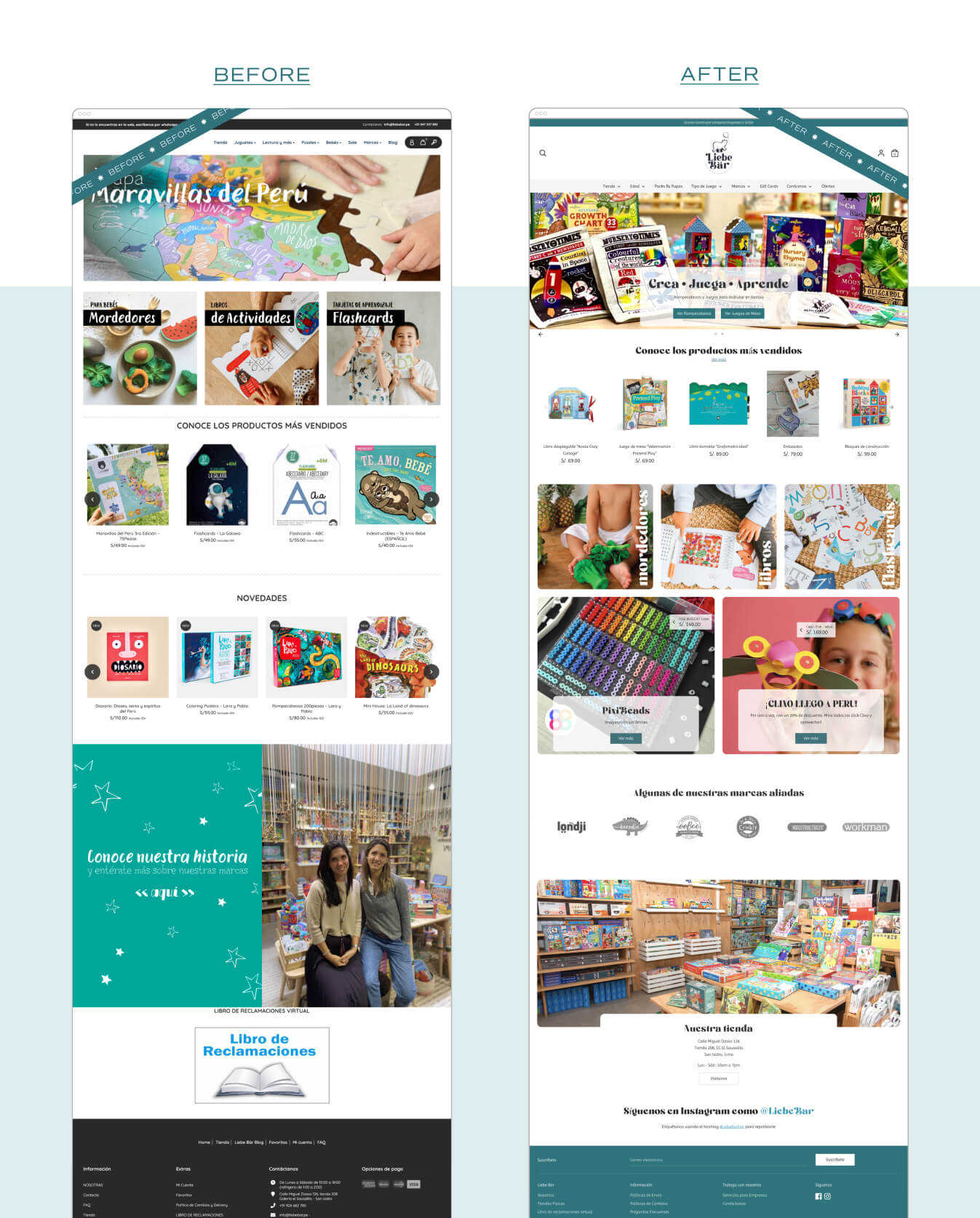 Liebe Bär came to us with very clear pain points. A big catalog, and a previous site that was confusing for parents. Simpler, dynamic, and faster were the words we had in mind when designing their new site. The result, a better user experience and happy owners.